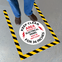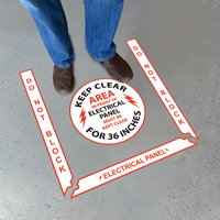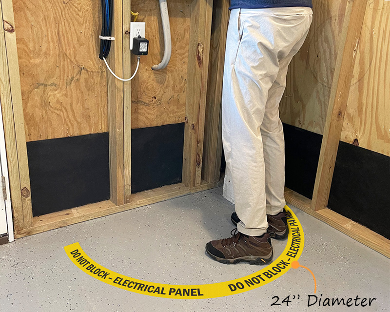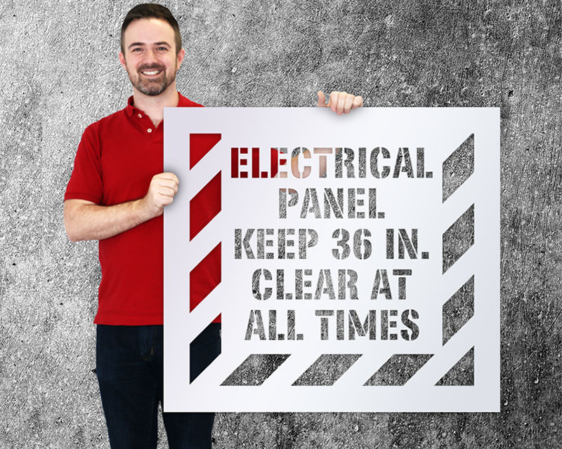 OSHA 1910.303(g) requires a 36" deep by 30" wide clear zone. You can mark this area with electrical panel clearance signs to ensure compliance.