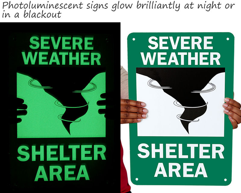 Custom severe weather refuge signs
