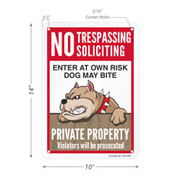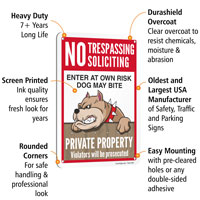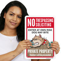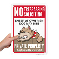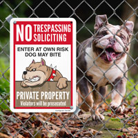 No Trespassing Soliciting Dog Sign: Enter At Your Own Risk Dog May Bite, Private Property Violators Will Be Prosecuted (S2-5814)