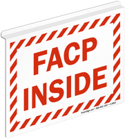 Yes, our FACP inside sign with striped border and projecting sign options are designed to mount over a door or hang from ceiling tiles, making the fire alarm control panel visible from a distance and from multiple angles in large facilities where the panel may not be immediately visible from the main walkway.