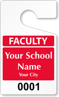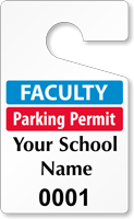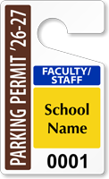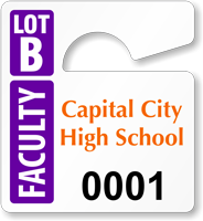 Find designs just for faculty, staff, and teachers. Organize campus parking with easy-to-see faculty parking permits that hang from your rearview mirrors. Tags are easy to move and the sturdy construction lasts for years, for a new and improved parking system