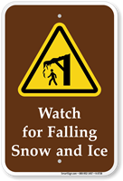 Property owners and managers have a duty to warn visitors of known hazards including falling ice and snow from rooftops, and our falling snow warning signs help fulfill this duty and reduce liability in slip-and-fall and falling ice injury claims, popular with landlords, property managers, and building owners in northern climates during winter months.