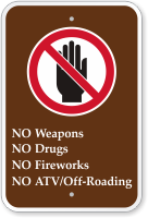 • • Post these signs to make a clear statement about park rules. Vivid graphics leave no question about what is prohibited in your park.