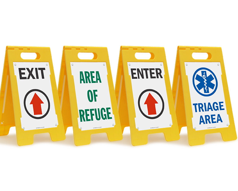 Floor Exit Signs are an important safety feature in your workplace. Exit Signs ensure that anyone inside can safely and swiftly find the exit. Show the way using a variety of signs ranging from anti-skid SlipSafeâ„¢ signs to our hard to miss FloorBoss signs.