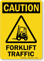 • • Bold and bright forklift traffic signs in striking yellow never go unnoticed. Standard forklift graphic makes sure everyone gets the message.