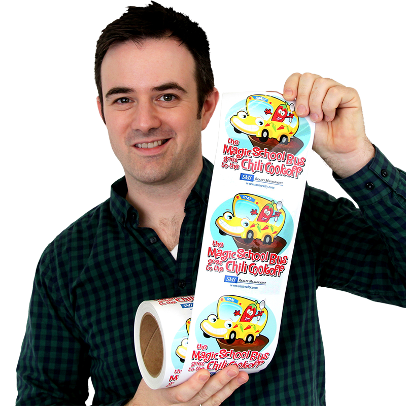 - Material options include vinyl, polypropylene, static cling, and of course, paper. Choose from different grades of adhesive, including permanent and removable.