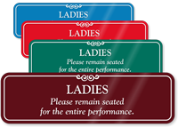 We do. Many of our funny bathroom signs are available in as many as 15 color choices, including red, brown, burgundy, teal, green, and more. Our Showcase Designer signs come in four exquisite colors - burgundy, forest green, red, and blue to match any professional or upscale setting.