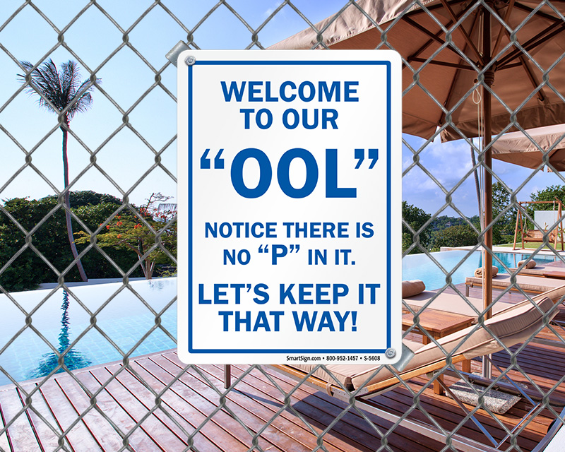 “Welcome to our pool (notice there's no 'p' in it…) Let's Keep it that way!”