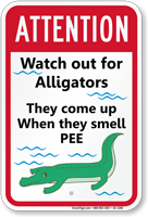 “Attention - Watch out for alligators , they come out when they smell pee”