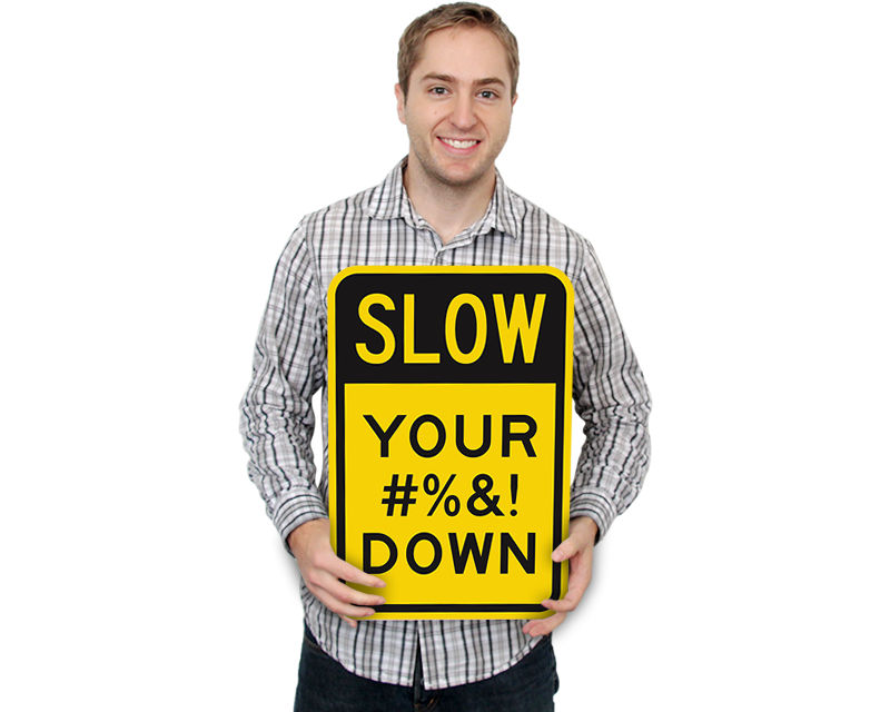 Get people to slow down, and laugh! Funny Slow signs is the perfect idea for your apartment complex or private property. Keep speedsters at bay with a lighthearted message. Funny Slow signs make great gifts too!