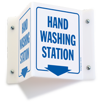 We also offer Projecting Handwashing V-Signs which have two flanges and two pre-drilled mounting holes on each flange. Just use some screws to fix the sign on a flat surface using the drilled holes. If not screws, you can use adhesive tape. All necessary hardware is included in the order.