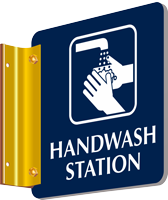 We also offer Projecting Handwashing V-Signs which have two flanges and two pre-drilled mounting holes on each flange. Just use some screws to fix the sign on a flat surface using the drilled holes. If not screws, you can use adhesive tape. All necessary hardware is included in the order.