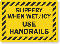 Our handrail signs remind building occupants to use handrails on stairways, ramps, and elevated walkways in aluminum, adhesive vinyl, and photoluminescent formats, including stair-nose adhesive labels that mount directly on individual steps for eye-level visibility as people ascend or descend.