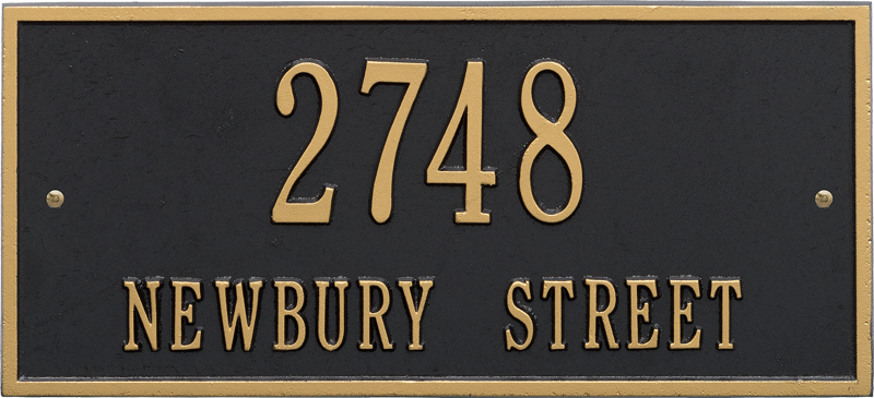 Stylishly elegant, the Hartford Standard Wall Two Lines Address Plaque will add a level of sophistication to your home's exterior. The address plaque is made from rust-free cast aluminum providing excellent quality. The plaque has a classic rectangular shape.