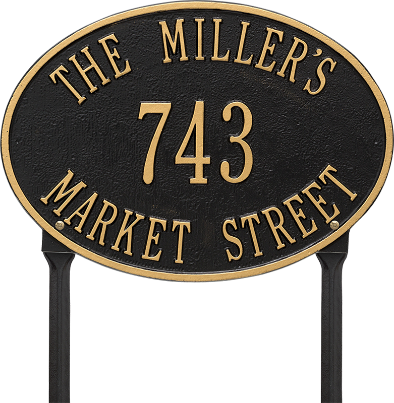The elegantly simple oval design of our Hawthorne Standard Lawn Three Lines Address Plaques makes it ideal for most any home's exterior. Available in a variety of finish colors to complement your outdoor color scheme.