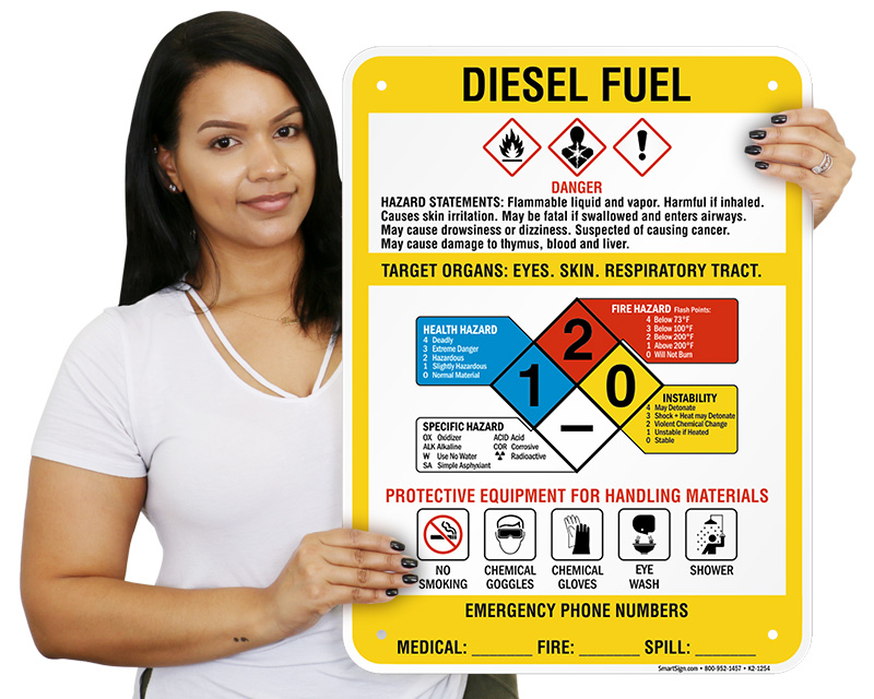 Our HazCom signs are a vital part of any professional chemical safety training program, describing hazard ratings, pointing out flammable materials, and reminding workers of required PPE, printed with durable 3M inks and laminated for protection against fading, chemicals, and abrasions with templates that let you customize ratings, select PPE symbols, and add the chemical name in minutes.