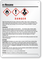 • • GHS Labels contain everything to know about the properties and potential harmful effects of n-Hexane.