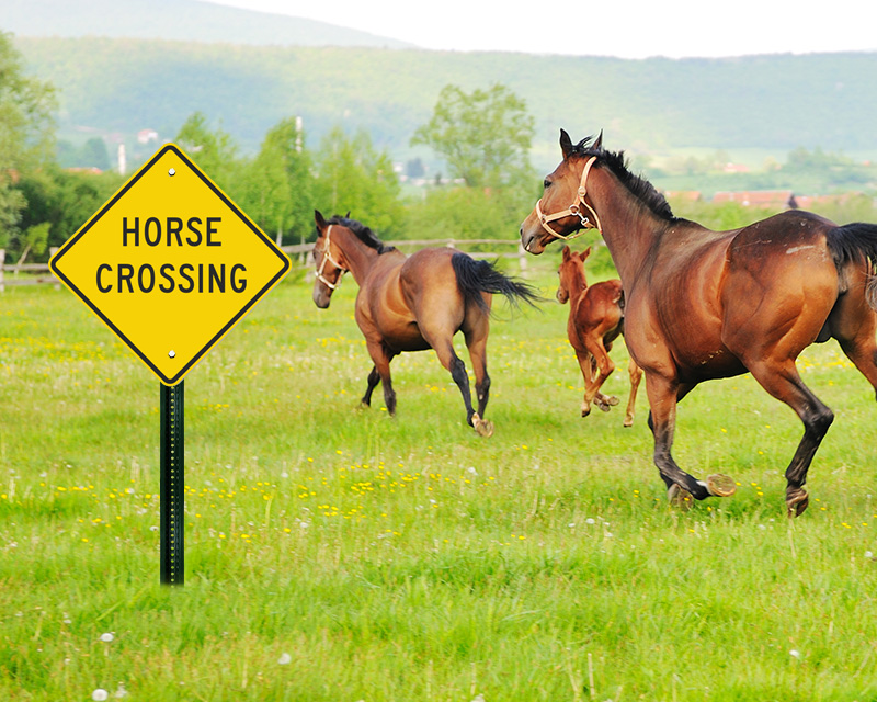 • • Browse our collection of Horse Crossing Signs below and choose the best option to safeguard your roads and trails.