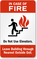 We carry a wide selection of In Case of Fire, Do Not Use Elevators, Use Stairway signs in standard, Braille, glare-proof, and photoluminescent options. Signs comply with IBC Section 3002.3 and ADA requirements. We offer multiple sizes and materials including adhesive polyester labels and tactile TactileTouch signs with Braille - all in stock and shipping same day.