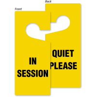 Medical offices, therapy practices, massage studios, law firms, recording studios, photography studios, and training facilities use in-session signs to prevent disruptions during time-sensitive or private activities. You can find options suitable for any location in our medical room signs category.