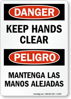Yes, our bilingual keep hands clear OSHA danger sign and full range of English/Spanish options from our keep hands clear signs collection ensure all operators understand the hand hazard restriction regardless of their primary language, particularly important in manufacturing facilities with diverse multilingual machine operators where language barriers could result in a serious crush, cut, or entanglement injury.