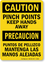 Yes, our bilingual keep hands clear OSHA danger sign and full range of English/Spanish options from our keep hands clear signs collection ensure all operators understand the hand hazard restriction regardless of their primary language, particularly important in manufacturing facilities with diverse multilingual machine operators where language barriers could result in a serious crush, cut, or entanglement injury.