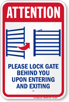 They should be placed on the exterior and interior of every gate leading to the pool area, ideally at eye level, so every person entering or leaving sees the instruction. For more comprehensive warnings, consider pairing these with private pool signs.