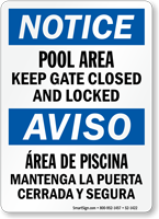 • Pool gate safety signs reinforce the importance of keeping gates locked.