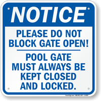 These signs help prevent accidental drowning. a propped-open gate defeats the purpose of a safety fence, allowing toddlers or unauthorized pets to wander into the pool area unsupervised. View our selection of keep pool gate closed signs.