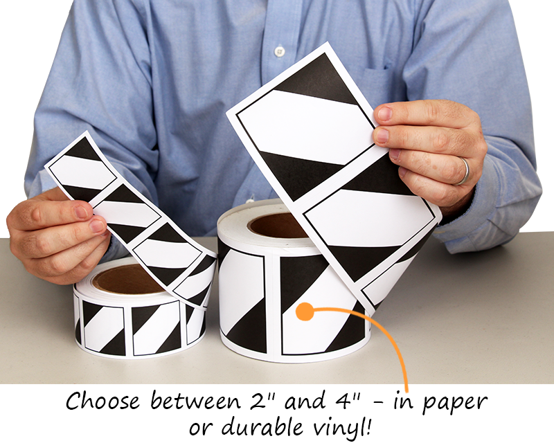 • • Choose between 2" or 4" - in paper or durable vinyl labels.