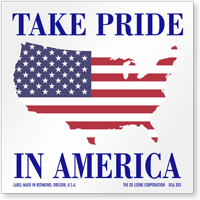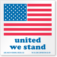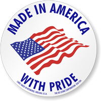 Show off your American products with Made in the USA Labels. A variety of graphics in red, white, and blue showcase domestic materials and production.