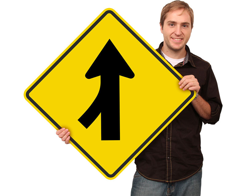 People don't always notice when the lanes start to narrow. Post a merge sign to alert drivers to upcoming traffic patterns. Help prevent confusion and accidents on your roads with graphics and bold arrows.