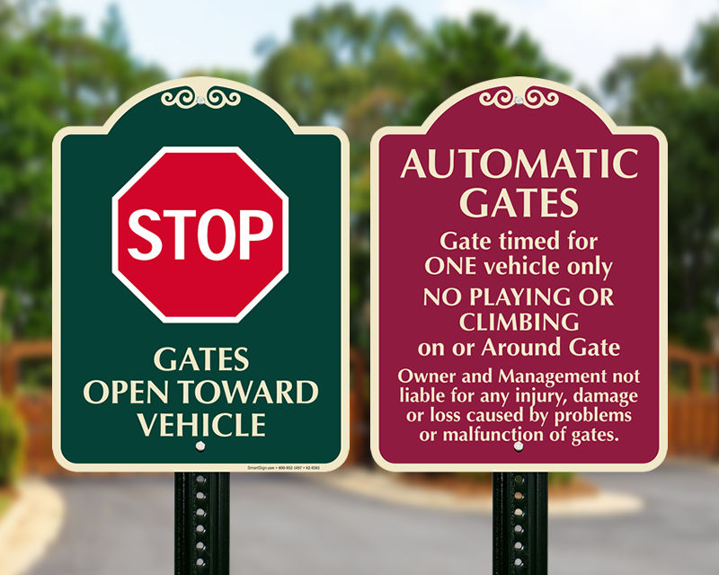 Warn guests and visitors about an automatic gate with these attractive signs. Perfect for a gated community, our stylish and durable messages will last for years outside.