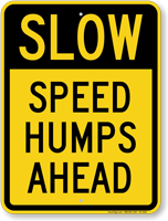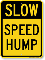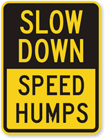 Our designer SignatureSigns communicate the speed bump/hump ahead warning in style. However, these are not official DOT MUTCD-compliant signs and are not meant for use on public roads. You may use these signs on a controlled private property only. They are ideal for large spaces of hotels, resorts, apartment complexes, offices, assisted living and even factories and schools.