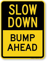 Don't give drivers a bad surprise. Warn them about lower speed limits in school zones or around parking lots. Post speed bump signs so everyone knows what's coming up ahead.