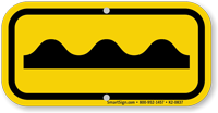Our designer SignatureSigns communicate the speed bump/hump ahead warning in style. However, these are not official DOT MUTCD-compliant signs and are not meant for use on public roads. You may use these signs on a controlled private property only. They are ideal for large spaces of hotels, resorts, apartment complexes, offices, assisted living and even factories and schools.