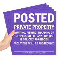 Of course, you can. Our easy-to-customize no hunting templates let you add your message to the sign, choose the font size and style, and select the mounting mode. You may also select the material you want for your no hunting sign. From adding particular rules to adding your name and address, you can personalize your sign just as you like to enforce the policies specific to your property.