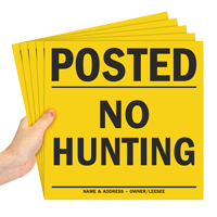 Privately owned land areas such as farms, ranches, animal parks, restricted public land, etc. can benefit from no hunting signs.