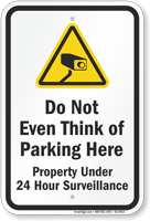 Parking lots are a hub of criminal activities. Security signs such as area under 24 hours surveillance, camera in use, activities monitored, etc., effectively warn against theft of and from cars, vandalism, robbery, assault, possession and use of guns or weapons in the parking lot, illegal parking, littering, trespassing, or loitering in the lot.