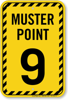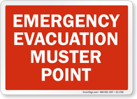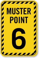 Muster point signs direct all guests and employees during an emergency. Post signs for your thoughtful and prepared evacuation plan.