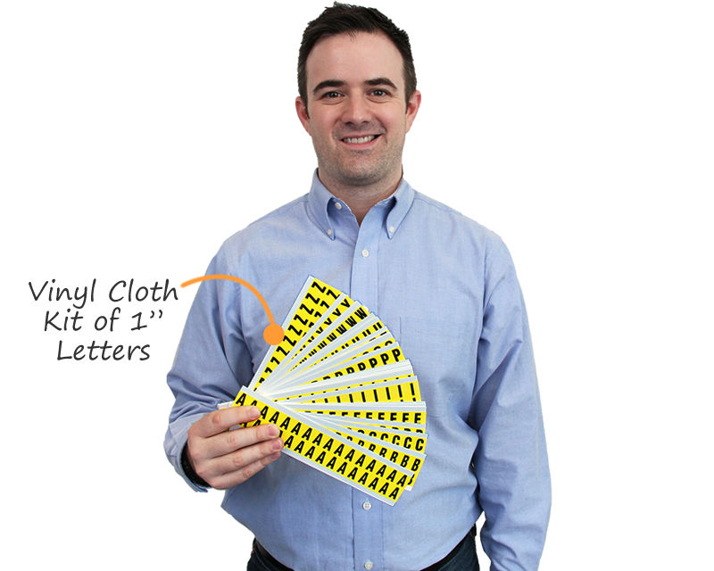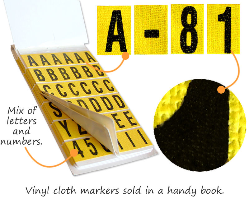 Size: 0.75" x 0.5625" Material type: Vinyl Cloth Adhesive Numbers & Letters (Removable)