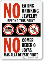 Bilingual signs like “No Eating Or Drinking In This Area / No Comer No Beber En Esta Area” or “No Food Or Drinks Beyond This Point / Despues De Este Punto No Se Permite Comida O Bebidas” are some examples of how one sign can benefit a wider group of people.