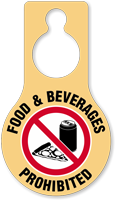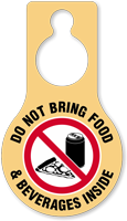 Door hangers are lightweight and can be suspended from the doorknob or door handle to display the No Food or Drink message. Door tags are ideal for controlled environments, chemical storage rooms, electrical rooms, or any other enclosed space where there is a risk of contamination, fire, etc. These tags are also suitable for areas where eating food would disturb the decorum, like meeting rooms, conference rooms, etc.