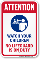 Explore our extensive collection of No Lifeguard On Duty Signs! Ensure the safety of your pool area by effectively communicating the absence of a lifeguard on duty and swimmers must swim at their own risk.