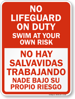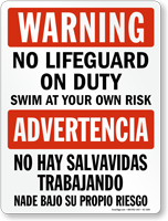 Bilingual signs break linguistic barriers and reach out to people who understand different languages. We offer “No Lifeguard on Duty” signs in English and Spanish languages to reach out to a broader audience. You should go for a bilingual sign if pool instructions are frequently translated into Spanish or if there is a substantial non-English speaking audience (like Hispanics) who must be aware that the lifeguard is not on duty.