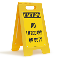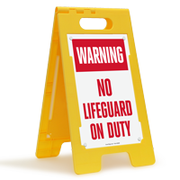 Yes. Our portable sign options like FloorBoss Signs and ConeBoss Signs are ideal for temporary applications like the time when a lifeguard takes a break. FloorBoss Free-Standing Sign folds flat for easy storage when not in use. This plastic stand has two sign panels with a “No Lifeguard on Duty” message for both sides. ConeBoss “No Lifeguard on Duty” Sign fits onto the top of any traffic or safety cone. Even this sign can be temporarily placed till the lifeguard comes back on duty. These two signs are lightweight and easy to carry too.