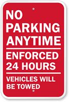 About our No Parking Any Time Signs
