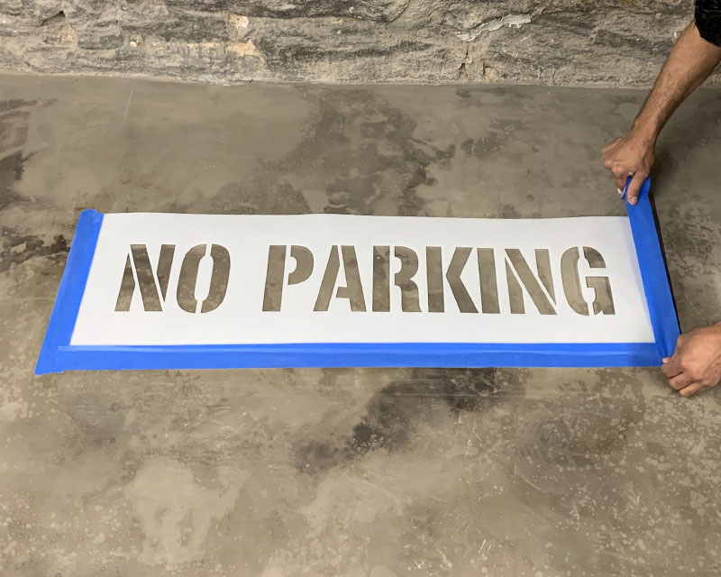 Private Properties: Property owners can get rid of the problem of illegitimate parking or vehicles blocking garage doors on their property. Keep your space reserved at all times by painting messages like “No Parking In Front of Door”, “No Parking Ever”, or “Do Not Block” with stencils.