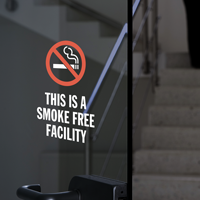 Post our No Smoking Glass Decals on doors and windows so people are aware of your policy before entering your facility, office, business, school, etc. Our GlassPalâ„¢ and TwinCalâ„¢ No Smoking Decals for windows or glass doors are designed to adhere to the inside of the glass and be seen from the outside.