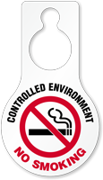 • No Smoking Tags can be hung from a door knob or clipped into the door itself. Easy to remove - yet hard to miss, these tags are used by dorms, hotels and clinics.